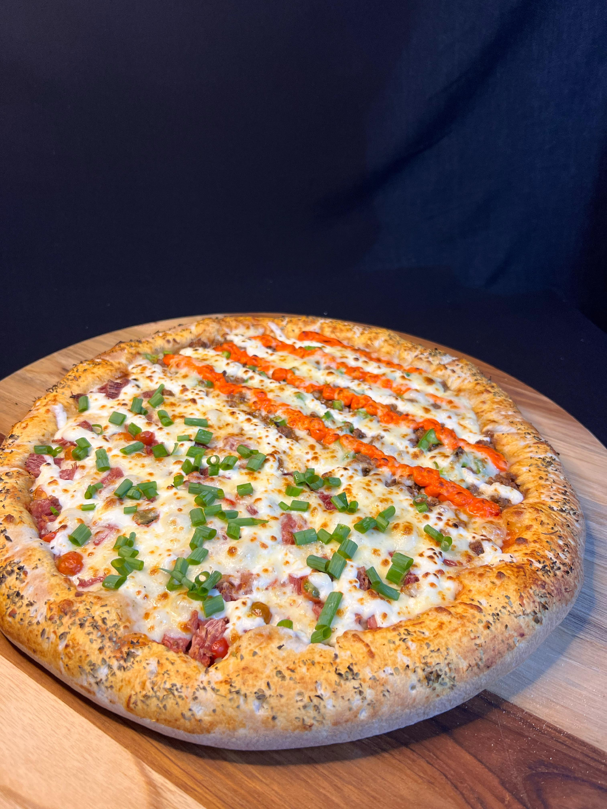Mussarela, Alho, Bacon, Ovos, Cebola, Calabresa, Pimenta